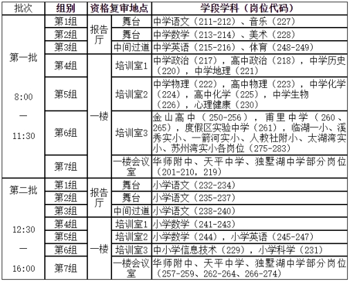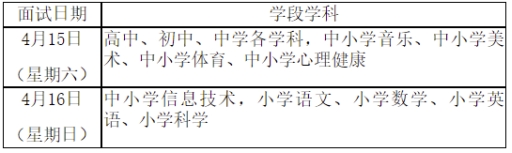 六、面試時間:4月15日、16日,具體安排如下。面試地點:越溪實驗小學(蘇州市吳中區(qū)越城西路1號)。詳見面試準考證。