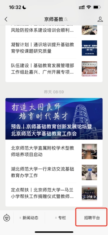 第四步:請應聘者及時關注“京師基教”微信公眾號及報名網(wǎng)站通知信息,簡歷篩選通過后4月24日-26日將于公眾號和報名網(wǎng)站發(fā)布考核確認通知,逾時未操作視為自動放棄。
