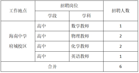 根據(jù)海南中學國際部發(fā)展需要,現(xiàn)面向社會公開招聘高中學段骨干教師6名(編外聘用,采用第三方機構建立勞動關系)。