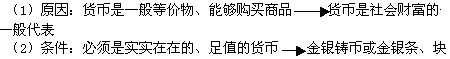 同學(xué)閱讀后歸納:足值的金、銀條塊──富商打上印記的金、銀塊──國(guó)家制造的鑄幣貨幣。