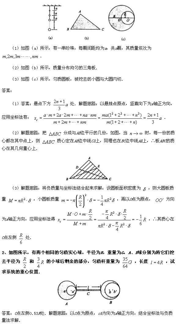內(nèi)容:參考“探究活動”中所給的“質(zhì)心與重心的求解”內(nèi)容,對一些特殊形狀物體的重心進行計算求解,利用初中所學的杠桿原理分析,寫出專題性小論文。
