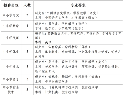 研究生及以上學(xué)歷畢業(yè)生或全日制普通高校師范類專業(yè)本科畢業(yè)生,其中體育、美術(shù)、音樂(lè)、信息技術(shù)崗位放寬到非師范類專業(yè);年齡在30周歲及以內(nèi)(1992年5月23日以后出生)。