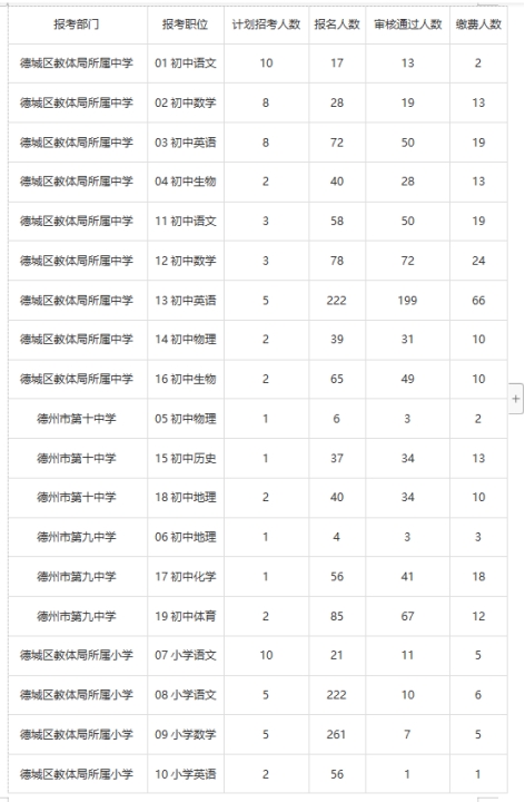 2023年德州市德城區(qū)公開(kāi)招聘教師報(bào)名情況公示