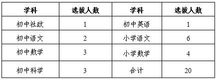 視報名對象情況,可對選拔指標數(shù)適當調(diào)劑。高中教師(不包含職高教師)也可申報相應(yīng)學(xué)科崗位。