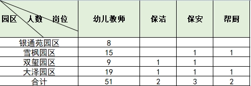 (2)試用期滿經(jīng)考核合格后正式聘用,工資增加績(jī)效、教齡、班主任補(bǔ)助等,并購(gòu)買五險(xiǎn)(養(yǎng)老、失業(yè)、工傷、醫(yī)療(包含生育險(xiǎn))大病救助保險(xiǎn))。