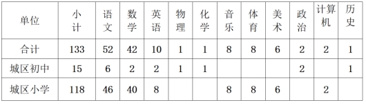 (一)面向農(nóng)村選調(diào)中小學(xué)教師133名,具體情況見下表: