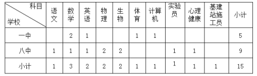 因一中、八中部分科目教師緊缺,經(jīng)研究,主要向本縣農(nóng)村高中學(xué)校選調(diào)部分教師,現(xiàn)就有關(guān)事項(xiàng)公告如下: