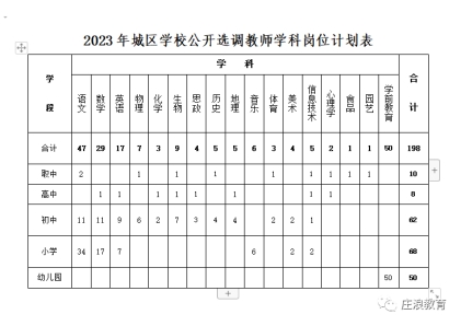 公開選調(diào)教師198人(職教中心10人、高中8人、初中62人、小學(xué)68人、幼兒園50人)。