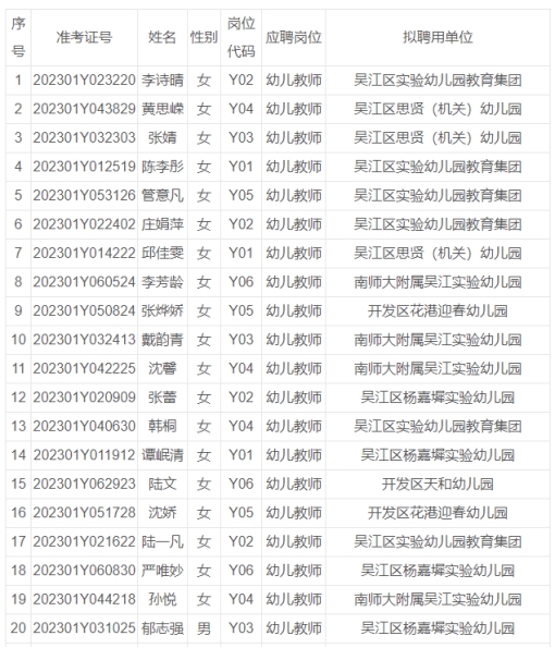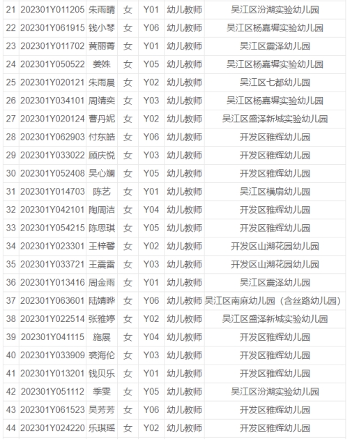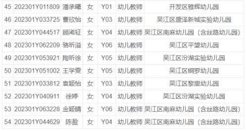根據(jù)《2023年蘇州市吳江區(qū)備案制幼兒教師公開(kāi)招聘公告》,經(jīng)過(guò)考試、體檢、政審等程序,以下擬錄用人員予以公示。