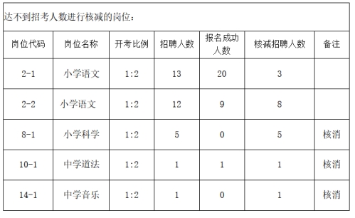 2023年昆山高新區(qū)公開(kāi)招聘區(qū)屬公辦學(xué)校代課教師報(bào)名工作已經(jīng)結(jié)束,根據(jù)招聘簡(jiǎn)章規(guī)定,經(jīng)研究決定,對(duì)下列達(dá)不到招考人數(shù)的崗位進(jìn)行核減。