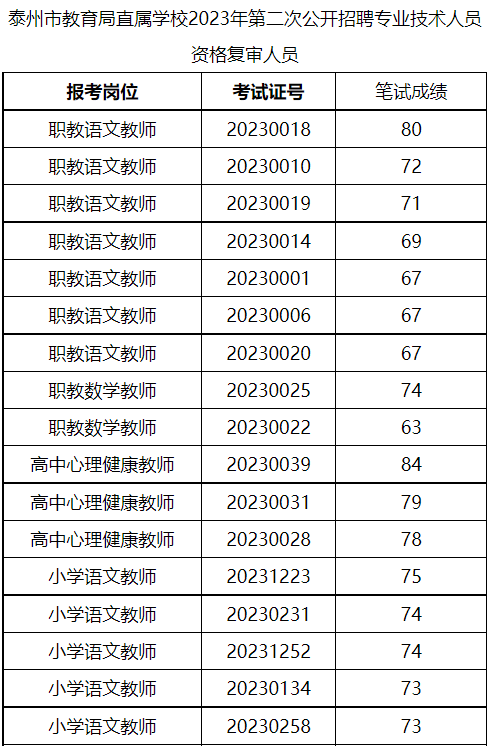 附件:泰州市教育局直屬學校2023年第二次公開招聘專業(yè)技術(shù)人員資格復審人員