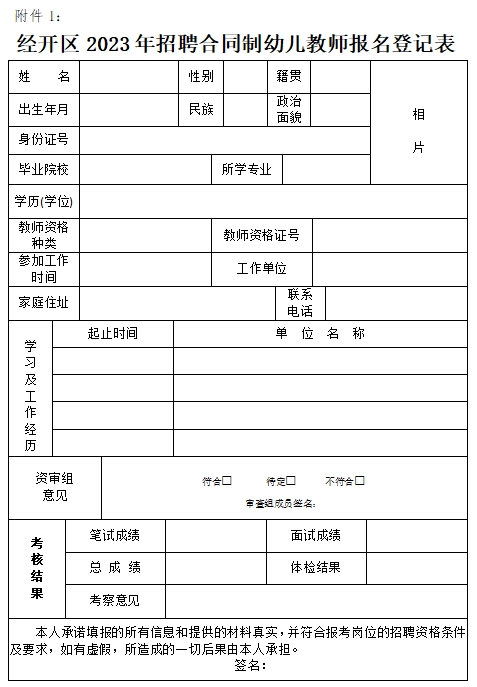 (1)經(jīng)開區(qū)2023年招聘合同制幼兒教師報名登記表;