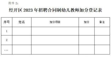 (2)經(jīng)開區(qū)2023年招聘合同制幼兒教師加分登記表;