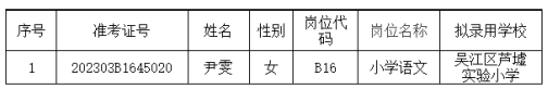 根據(jù)《2023年蘇州市吳江區(qū)公開招聘備案制教師公告》,經(jīng)過考試、體檢、政審等程序,以下擬錄用人員予以公示。