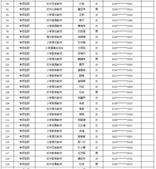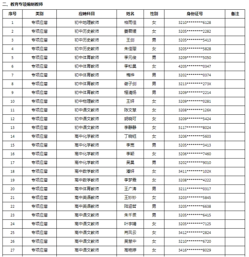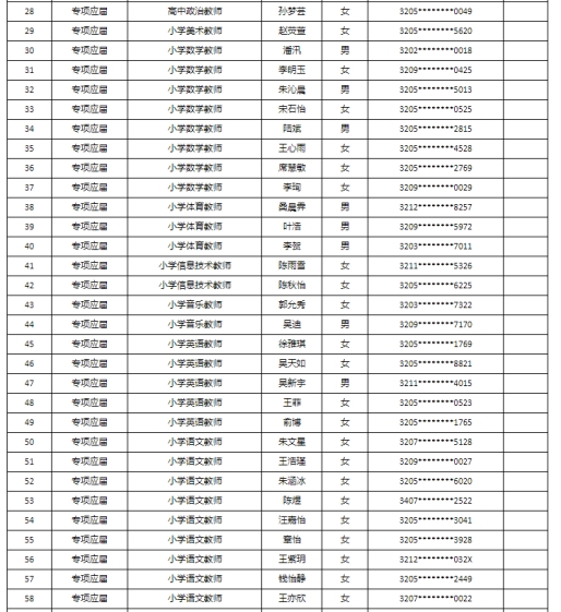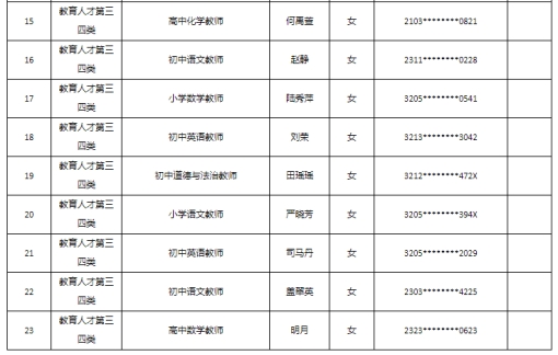 根據(jù)《2023年蘇州高新區(qū)教育系統(tǒng)第二批公開招聘事業(yè)編制高層次、緊缺型教育人才公告》、《2023年蘇州高新區(qū)第二批公開招聘教育專項編制教師公告》要求,經(jīng)過報名、考試、體檢和政審,擬錄用以下同志,現(xiàn)公示如下: