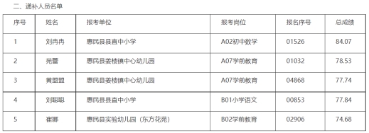 根據(jù)《2023年惠民縣教體系統(tǒng)公開招聘教師簡章》要求,對進(jìn)入考察范圍的100人進(jìn)行材料審查,其中放棄審查資格及審查不合格人員5人。詳細(xì)情況如下: