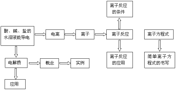 2、通過對電解質(zhì)知識框架中各知識點有序的衍變分析、推導,讓學生感受到化學學習中的邏輯美。