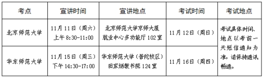 3、各考點(diǎn)宣講期間均可接受報(bào)名,北京師范大學(xué)考點(diǎn)宣講結(jié)束后,該考點(diǎn)不再接受報(bào)名信息,考生可選擇華東師范大學(xué)考點(diǎn)參加考試,華東師范大學(xué)考點(diǎn)宣講結(jié)束后停止報(bào)名。