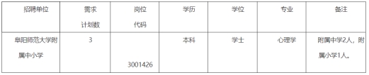 阜陽(yáng)師范大學(xué)附屬中小學(xué)是經(jīng)安徽省教育廳批準(zhǔn)的公辦學(xué)校,隸屬于阜陽(yáng)師范大學(xué)。因教育教學(xué)需要,根據(jù)《事業(yè)單位人事管理?xiàng)l例》(國(guó)務(wù)院令第652號(hào))和《關(guān)于印發(fā)〈安徽省事業(yè)單位公開(kāi)招聘人員暫行辦法〉的通知》(皖人社發(fā)〔2010〕78號(hào))等規(guī)定,阜陽(yáng)師范大學(xué)附屬中小學(xué)現(xiàn)面向教育部直屬六所師范大學(xué)2024屆公費(fèi)師范畢業(yè)生公開(kāi)招聘心理健康教育教師,現(xiàn)就有關(guān)事項(xiàng)公告如下: