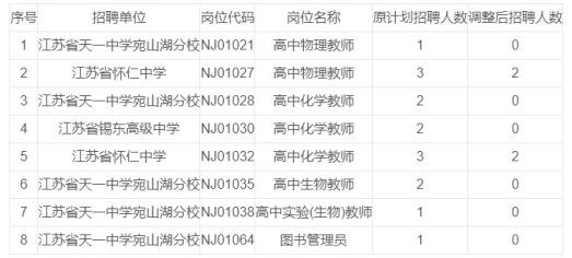 根據(jù)《無錫市錫山區(qū)教育系統(tǒng)面向2024屆全日制普通高校應(yīng)屆畢業(yè)生公開招聘事業(yè)編制教師公告》規(guī)定,南京師范大學(xué)考點(diǎn)共8個(gè)招聘崗位的報(bào)名人數(shù)未達(dá)開考比例,經(jīng)研究,將核減、取消部分崗位招聘計(jì)劃: