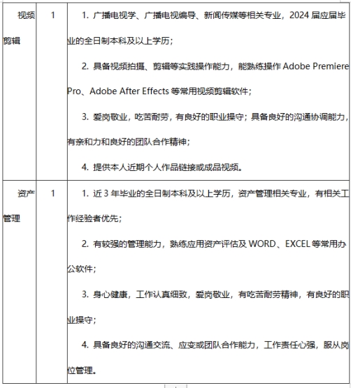 “985”“211”“雙一流”大學(xué)、教育部直屬重點師范大學(xué)、省屬重點師范大學(xué)全日制本科及其以上學(xué)歷2024屆畢業(yè)生。應(yīng)聘視頻剪輯和資產(chǎn)管理的教師:符合招聘崗位中的應(yīng)聘條件即可。