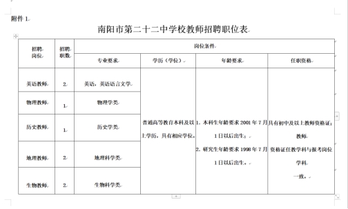 1.南陽市第二十二中學(xué)校教師招聘職位表