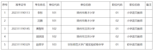 2023年11月江蘇揚(yáng)州市廣陵區(qū)教育系統(tǒng)事業(yè)單位公開(kāi)招聘教師體檢合格人員名單(一)
