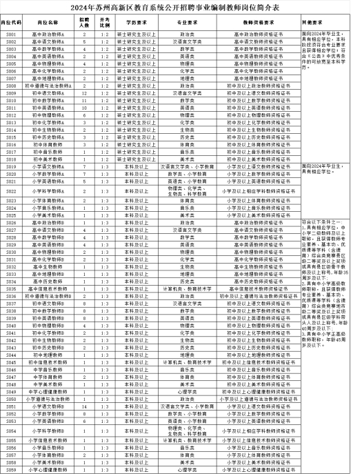 (四)具備《2024年蘇州高新區(qū)教育系統(tǒng)公開(kāi)招聘事業(yè)編制教師崗位簡(jiǎn)介表》(見(jiàn)后文)中要求的資格條件,崗位簡(jiǎn)介表中對(duì)招聘崗位基本條件和其他資格條件另有規(guī)定的從其規(guī)定。