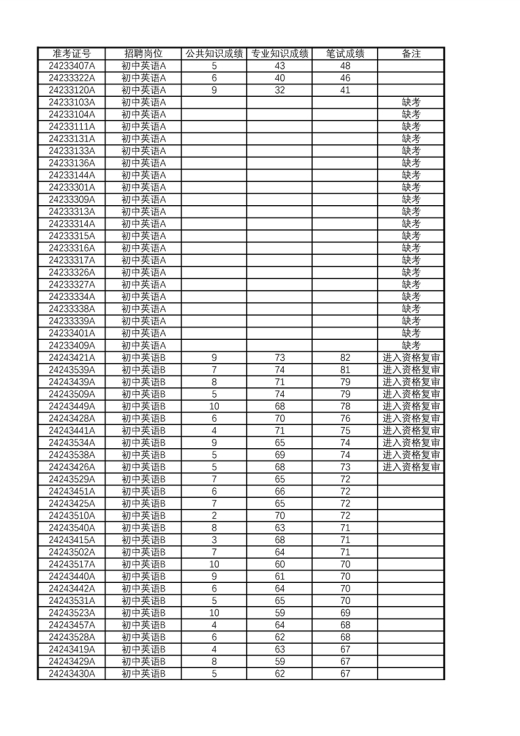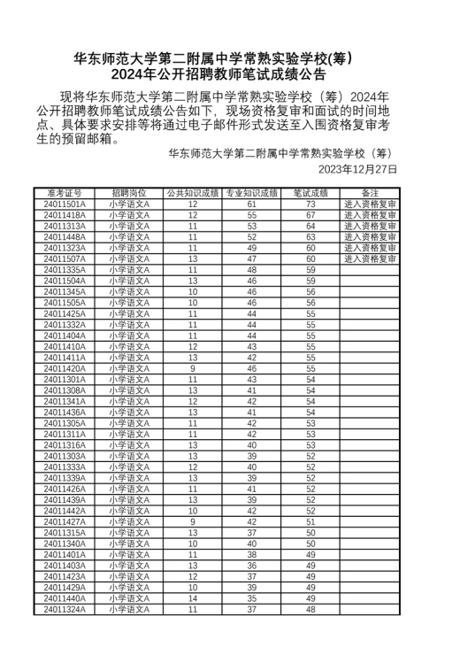 2024年江蘇華東師范大學(xué)第二附屬中學(xué)常熟實(shí)驗(yàn)學(xué)校(籌)公開招聘教師筆試成績(jī)公告