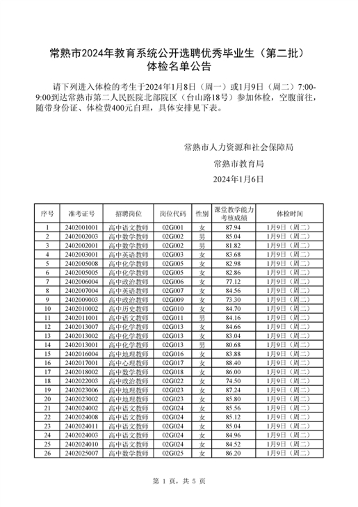 2024年蘇州常熟市教育系統(tǒng)公開選聘優(yōu)秀畢業(yè)生(第二批)體檢名單公告