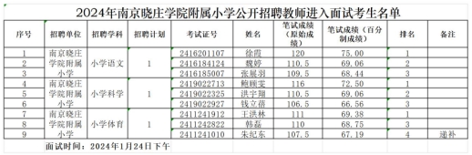 2024年南京曉莊學(xué)院附屬小學(xué)公開招聘教師進(jìn)入面試考生名單