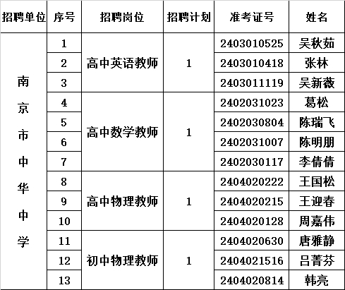 根據(jù)《南京市教育局直屬學(xué)校2024年公開招聘教師公告》(寧事招公告(R)〔2023〕35號(hào))的要求,現(xiàn)將參加面試的考生名單予以公示。