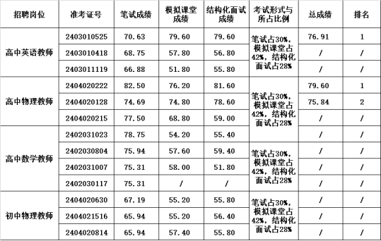 根據《南京市教育局直屬學校2024年公開招聘教師公告》(寧事招公告(R)〔2023〕35號)的要求,現(xiàn)將參加我校面試的考生成績予以公示。