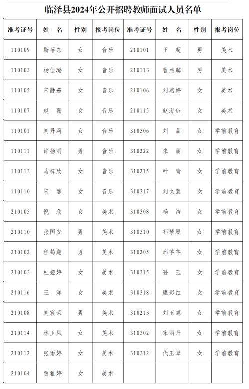 附件:臨澤縣2024年公開招聘教師面試人員名單