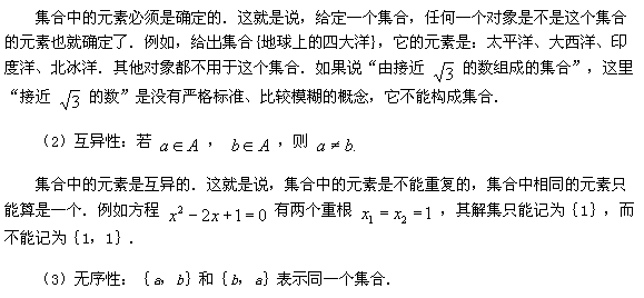 集合中的元素是不分順序的.集合和點的坐標是不同的概念,在平面直角坐標系中,點(l,0)和點(0,l)表示不同的兩個點,而集合{1,0}和{0,1}表示同一個集合.
