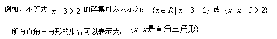 描述法:用確定的條件表示某些對(duì)象是否屬于這個(gè)集合,并把這個(gè)條件寫在大括號(hào)內(nèi)表示集合的方法。