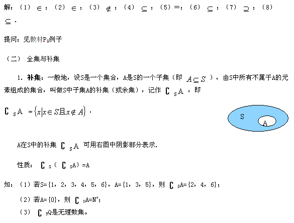 高中數(shù)學教案:高一數(shù)學《子集、全集、補集 》教案模板(2)