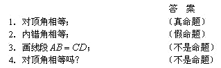 初一平面幾何中曾學(xué)過(guò)命題,請(qǐng)同學(xué)們舉一個(gè)命題的例子.(板書(shū):命題.)