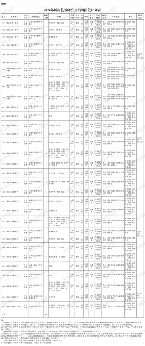 附件:2024年屏南縣學(xué)校公開招聘新任教師計劃表