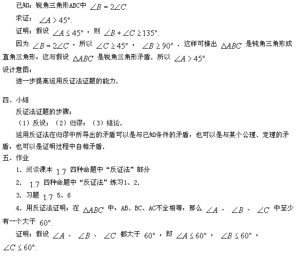讓學(xué)生進一步體會在反證法中如何進行反充、歸謬.