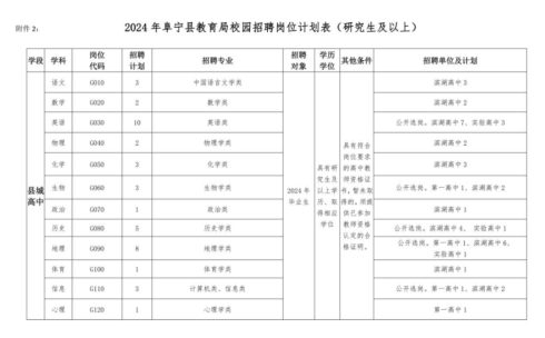 2.2024年春阜寧縣教育局校園招聘崗位計劃表(研究生及以上)