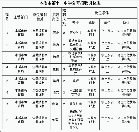 為加強(qiáng)教師隊(duì)伍建設(shè),持續(xù)優(yōu)化人才隊(duì)伍結(jié)構(gòu),積極促進(jìn)高校畢業(yè)生就業(yè),根據(jù)《事業(yè)單位人事管理?xiàng)l例》(國務(wù)院令第652號(hào))、《遼寧省事業(yè)單位公開招聘人員辦法》、《本溪市“名校優(yōu)生”校園招聘實(shí)施方案》,2024年本溪市第十二中學(xué)面向一流大學(xué)和一流建設(shè)學(xué)科高校(以下簡(jiǎn)稱“雙一流院校”),以及教育部直屬師范大學(xué)公開招聘教師15名,F(xiàn)將有關(guān)事項(xiàng)公告如下: