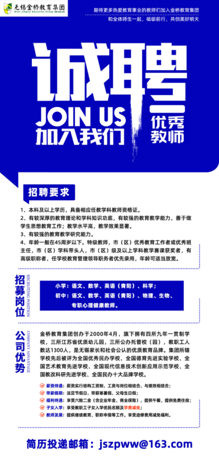 歡迎加入無錫教師招聘群:692321598,考情、招聘信息早知道