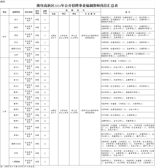附件:濰坊高新區(qū)2024年公開招聘事業(yè)編制教師崗位匯總表