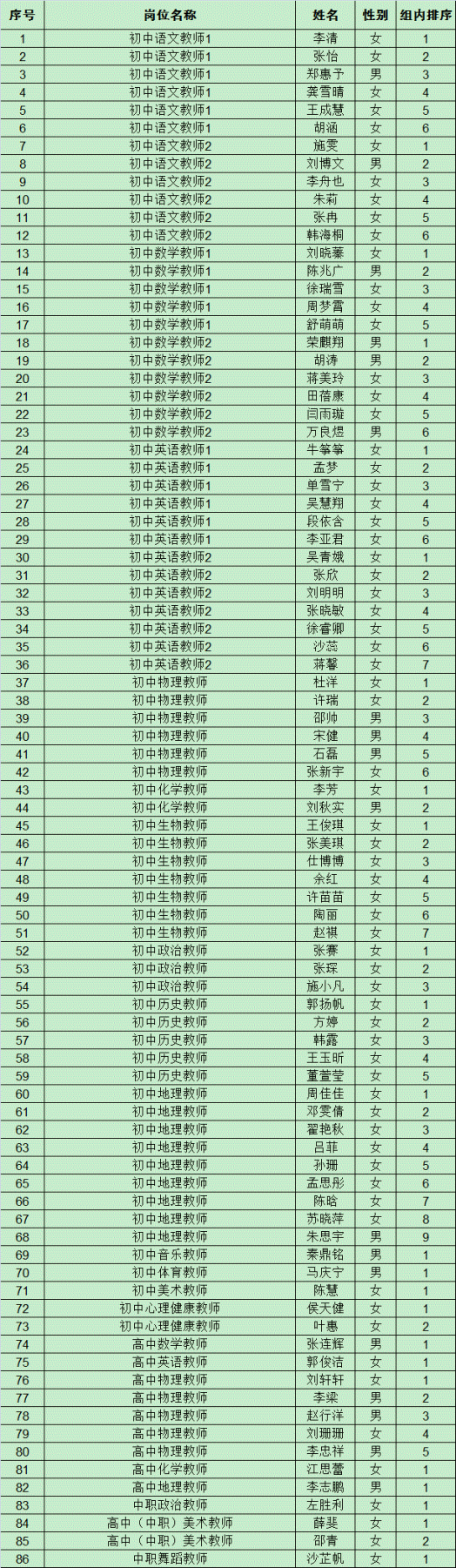 一、選崗人員名單