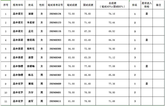 2024年6月江蘇南京市高淳區(qū)湖濱高級中學(xué)公開招聘教師成績公布