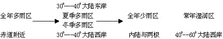(教師總結(jié))根據(jù)世界各地降水量的季節(jié)分布特征,可以將降水的季節(jié)分布概括出以下五種類型,找出每種類型代表的城市在世界年降水量分布圖中的位置。并完成表格