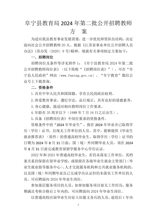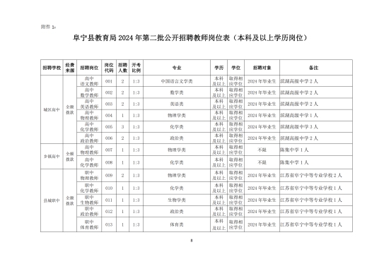 2024年鹽城阜寧縣教育局第二批公開(kāi)招聘教師方案【20人】