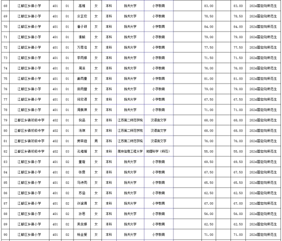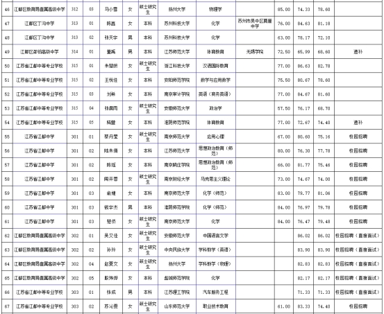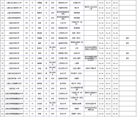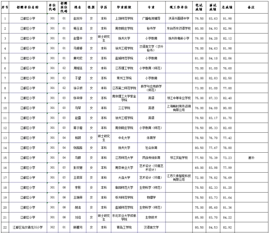 3月?lián)P州市江都區(qū)教育系統(tǒng)事業(yè)單位公開(kāi)招聘教師公告》要求,經(jīng)過(guò)網(wǎng)上報(bào)名、筆試、資格復(fù)審、面試、體檢和考察等規(guī)定程序,下列同志符合聘用條件,擬予聘用。(公示期:2024年