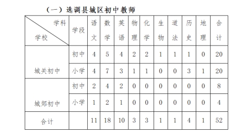 為進(jìn)一步加強(qiáng)師資隊(duì)伍建設(shè),解決教師學(xué)科結(jié)構(gòu)不優(yōu),城鄉(xiāng)分布不均衡問題,決定從鄉(xiāng)鎮(zhèn)初中、小學(xué)公開選調(diào)教師到我縣城區(qū)初中、小學(xué)任教。公告如下: